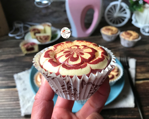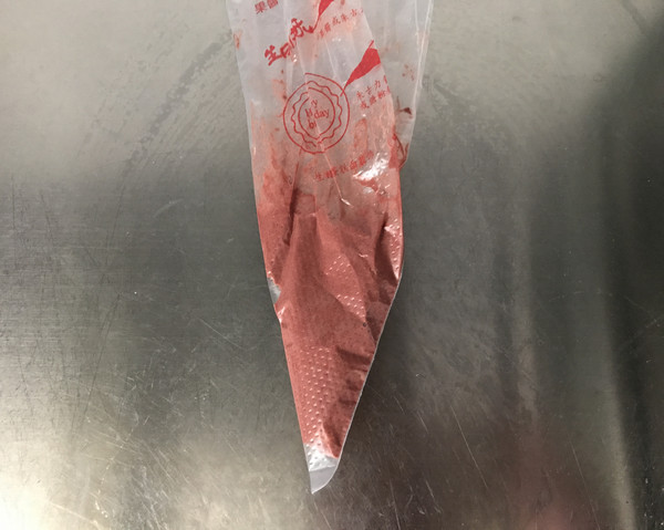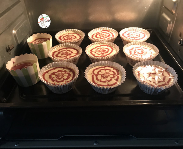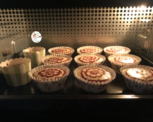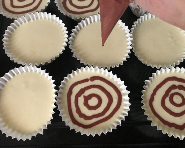 13.Squeeze the red yeast batter evenly on the surface of the paper cup