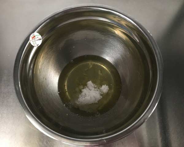 3.Add 60 grams of milk, 20 grams of corn oil and 10 grams of sugar to the basin, and stir well
