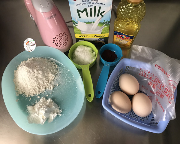 3 eggs, 30 grams of sugar, 60 grams of milk, 20 grams of corn oil, 15 grams of corn starch, 65 grams of low-gluten flour