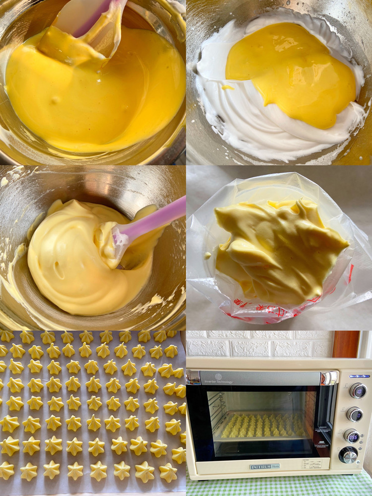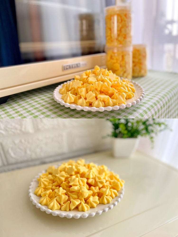 🍀🍀🍀🍀🍀 Preparation materials: 2 egg whites, 2 egg yolks, 18 grams of baby milk powder, a few drops of lemon juice, 5 grams of cornstarch, a piping tip, and a piping bag!